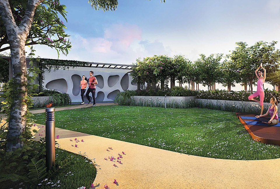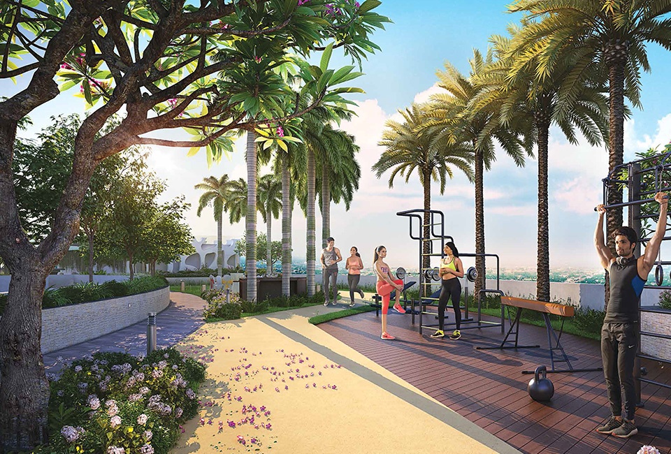 The 1,080-foot joggers' track becomes your runway, inviting you to paint your mornings with the vibrant hues of a sunrise run amidst the clouds. Exquisitely landscaped gardens with exotic flora and cascading water features add splashes of serenity to your artistic masterpiece.
